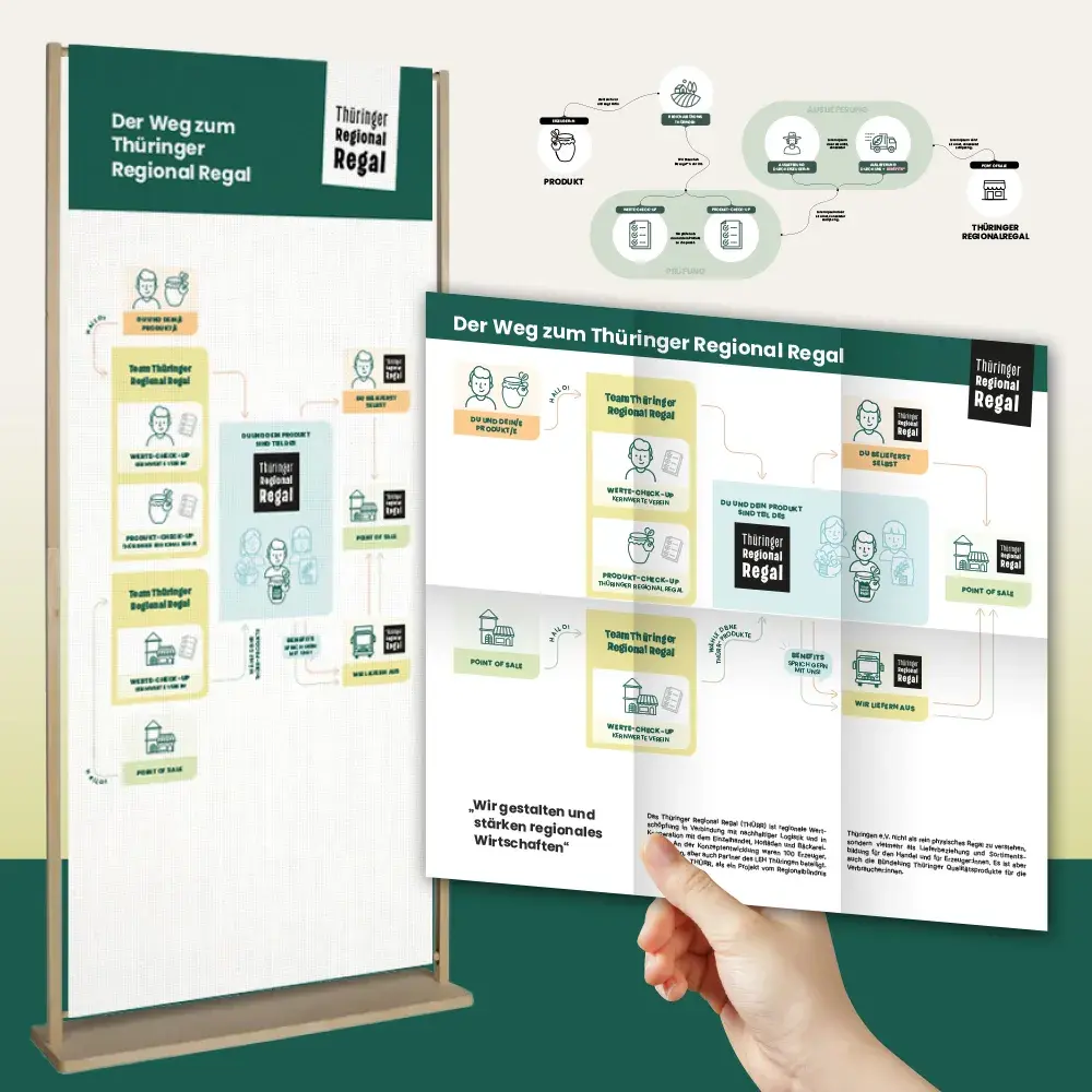 Beim Regionalbündnis Thüringen ergänzen ein illustriertes Organigramm zur Produktplatzierung und eine Prozessgrafik die Außendarstellung und erleichtern die Übersicht komplexer Abläufe.