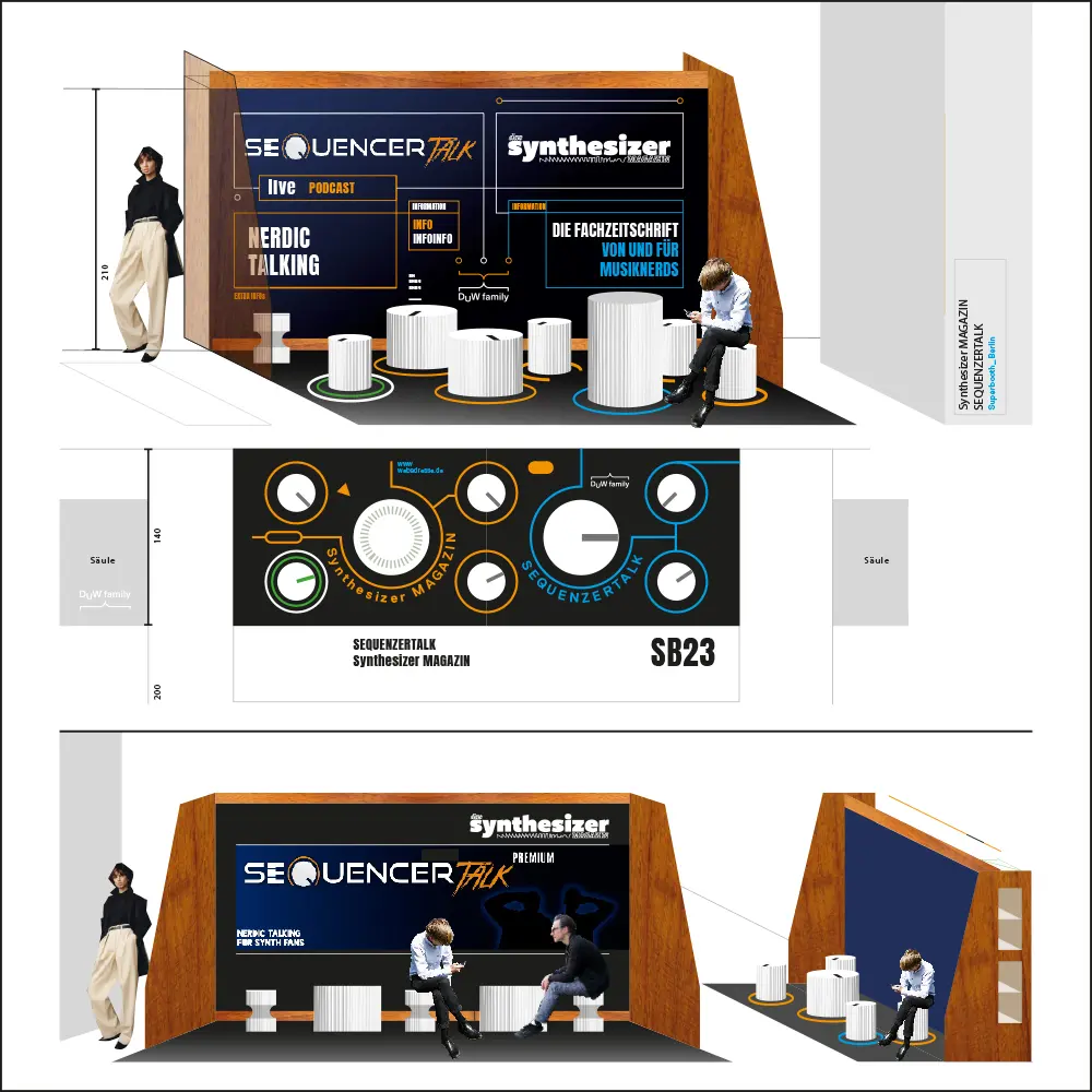 Dazu kamen Schaufenstergestaltungen, Einladungskarten und weitere visuelle Maßnahmen für Neu Deli / Kunstraum Delikatessenhaus. Auch konzeptionelle Entwürfe, wie ein begehbarer Messeauftritt für die Superbooth oder modulare Texttafeln für das Westkreuz, zeigen die Bandbreite unserer Arbeit – immer in enger Verbindung mit Ort, Inhalt und Kontext.