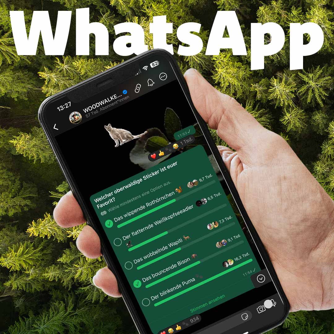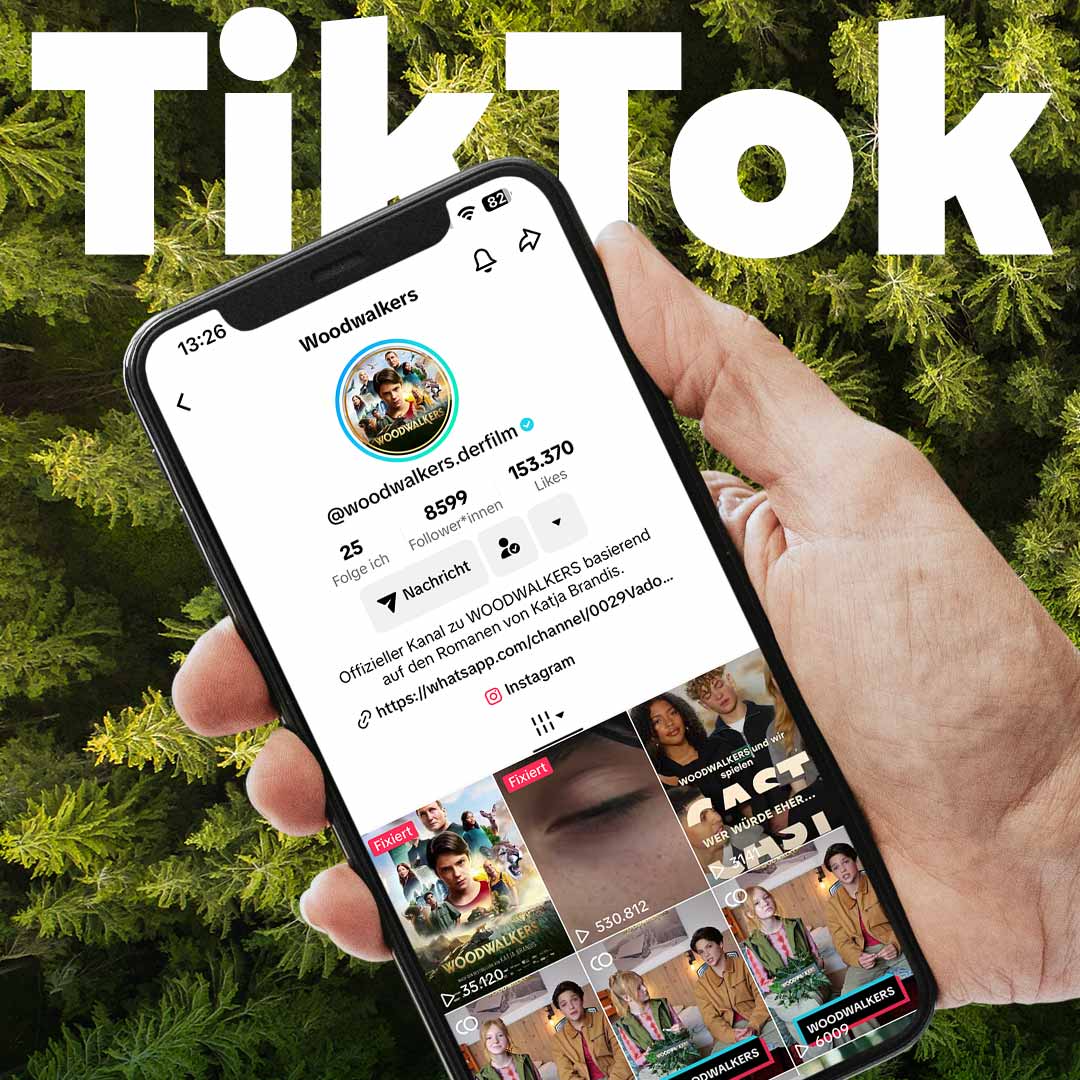 Hier geht es zu den Accounts bei Instagram, TikTok (@woodwalkers.derfilm) und WhatsApp.